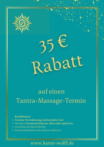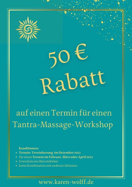 Da es ja sehr "weihnachtet" hast du übrigens auch die Möglichkeit, einen oder mehrere Gutscheine bei mir zu erwerben - sei es für eine Tantra-Massage, einen Workshop oder ein anderes meiner Angebote. Wie wäre es zum Beispiel damit, deine Partnerin oder deinen Partner damit zu überraschen, dass ihr Tantra-Massage aneinander lernt? Ich kann dir versichern: damit gelingt dir eine Überraschung sicherlich ;-)